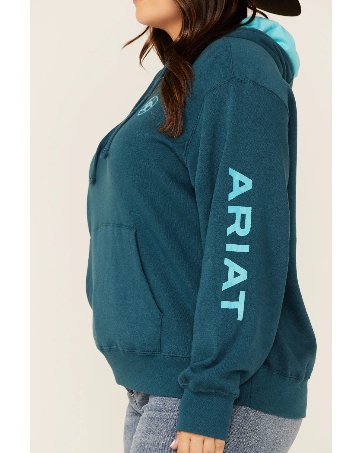 - “Ariat” logo graphic on left sleeve