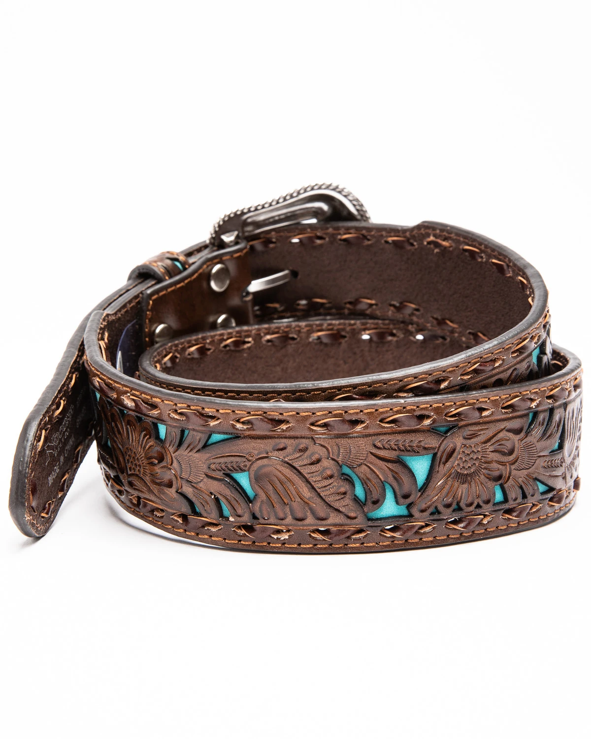 - Silver floral and scroll detailed buckle
